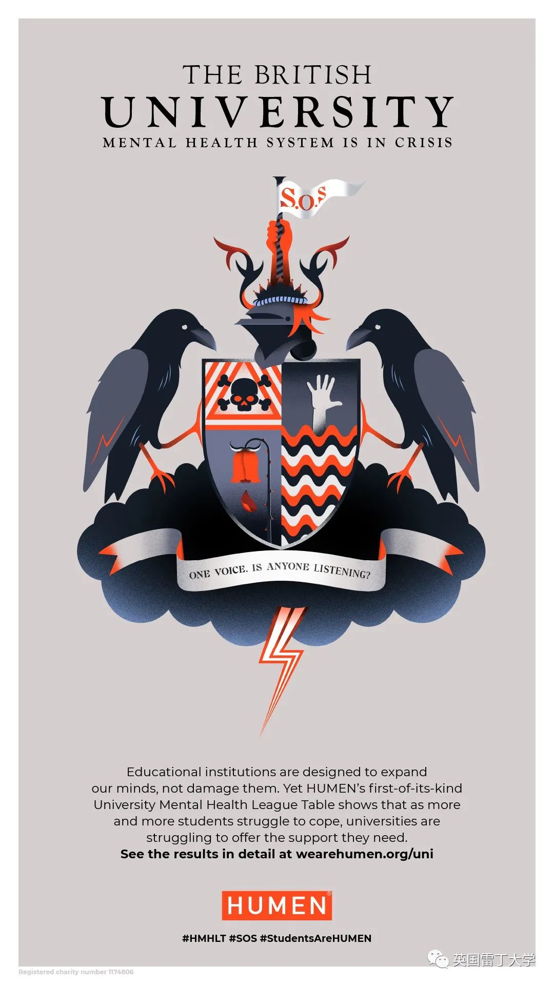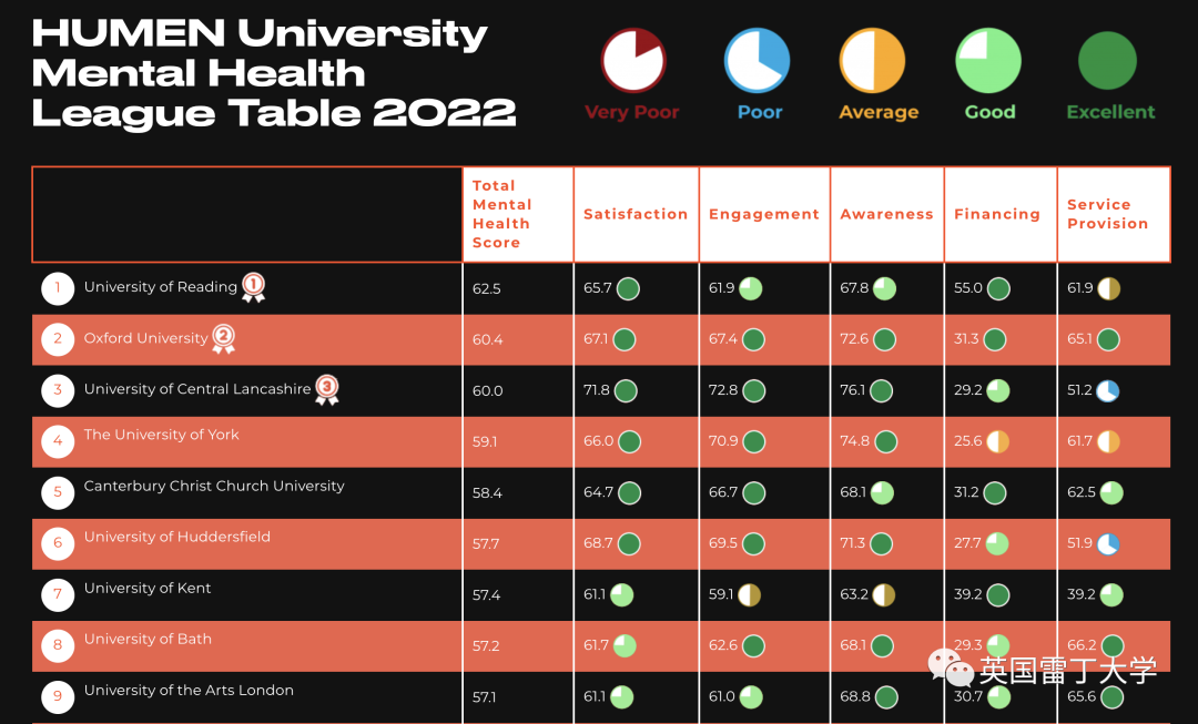 心理健康慈善机构HUMAN研究所进行了长达一年的实验调查英国每所大学学生心理健康以及大学对心理健康的宣传和支持。