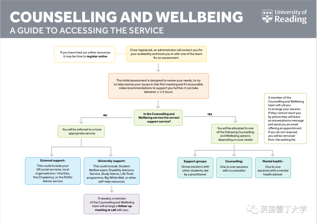或者也可以发邮件counselling@reading.ac.uk预约。