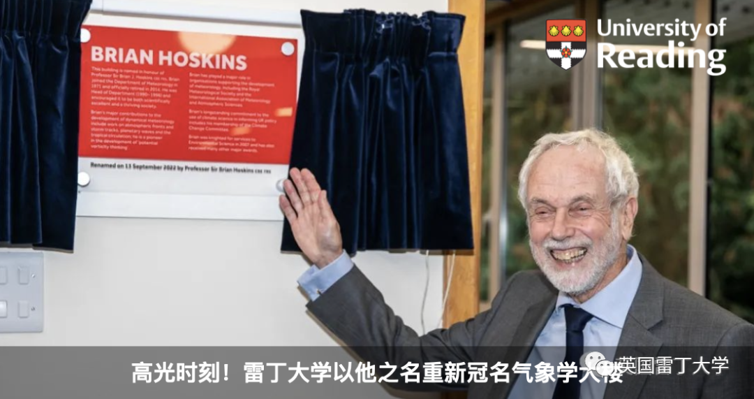 雷丁大学的气象学大楼正式以Sir Brian Hoskins教授的名字重新命名,以纪念他在雷丁大学以及气象学领域的突出成就。作为当代最杰出的气象学家,自1971年加入雷丁大学以来,Sir Brian Hoskins教授不断在气象领域中取得突破,并引领该系发展成为全球气象学领域的重要力量。