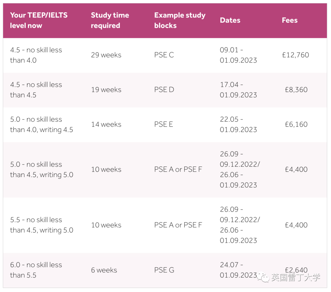 请在申请入读雷丁大学语言课程前,先与目标学位大学确认是否接受TEEP成绩哦~