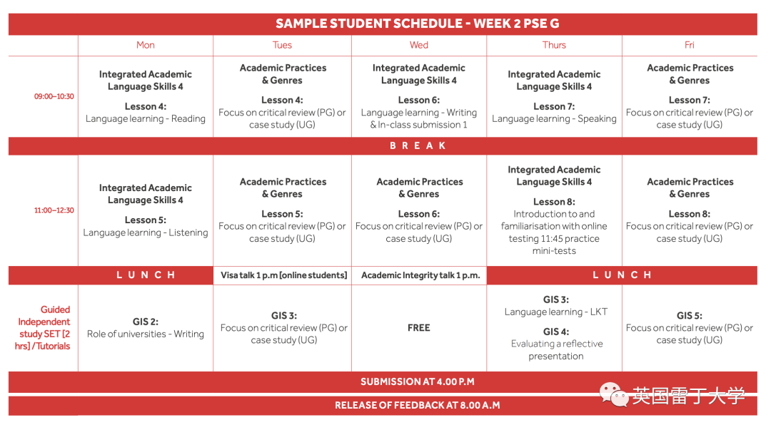 如果你不确定具体需要多少周的学习,可以通过 psadmissions@reading.ac.uk联系我们,寻求更多建议。