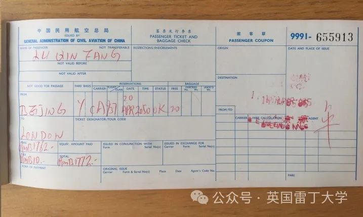 1985年4月20日, Lu搭乘中国国际航空公司CA937,开启了英国之旅,如今他仍保存着那张手写纸质机票。1980年代的北京首都机场,只有一个小小的1号航站楼,进入边境门的Lu对未知的旅程有些激动,看着他的身影渐渐从视线中消失,他的妻子泪流满面。